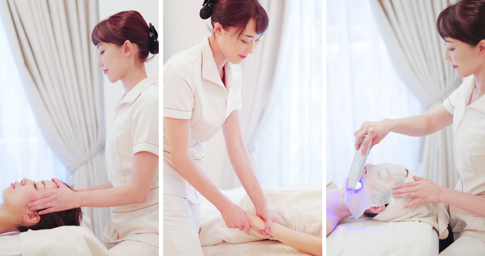 顔の土台である背中のケアから、頭蓋骨調整、造顔マッサージ、経絡ツボ、リンパを整え誰もが羨む小顔に。お客様の肌状態に合わせたトリートメントで美肌効果も。